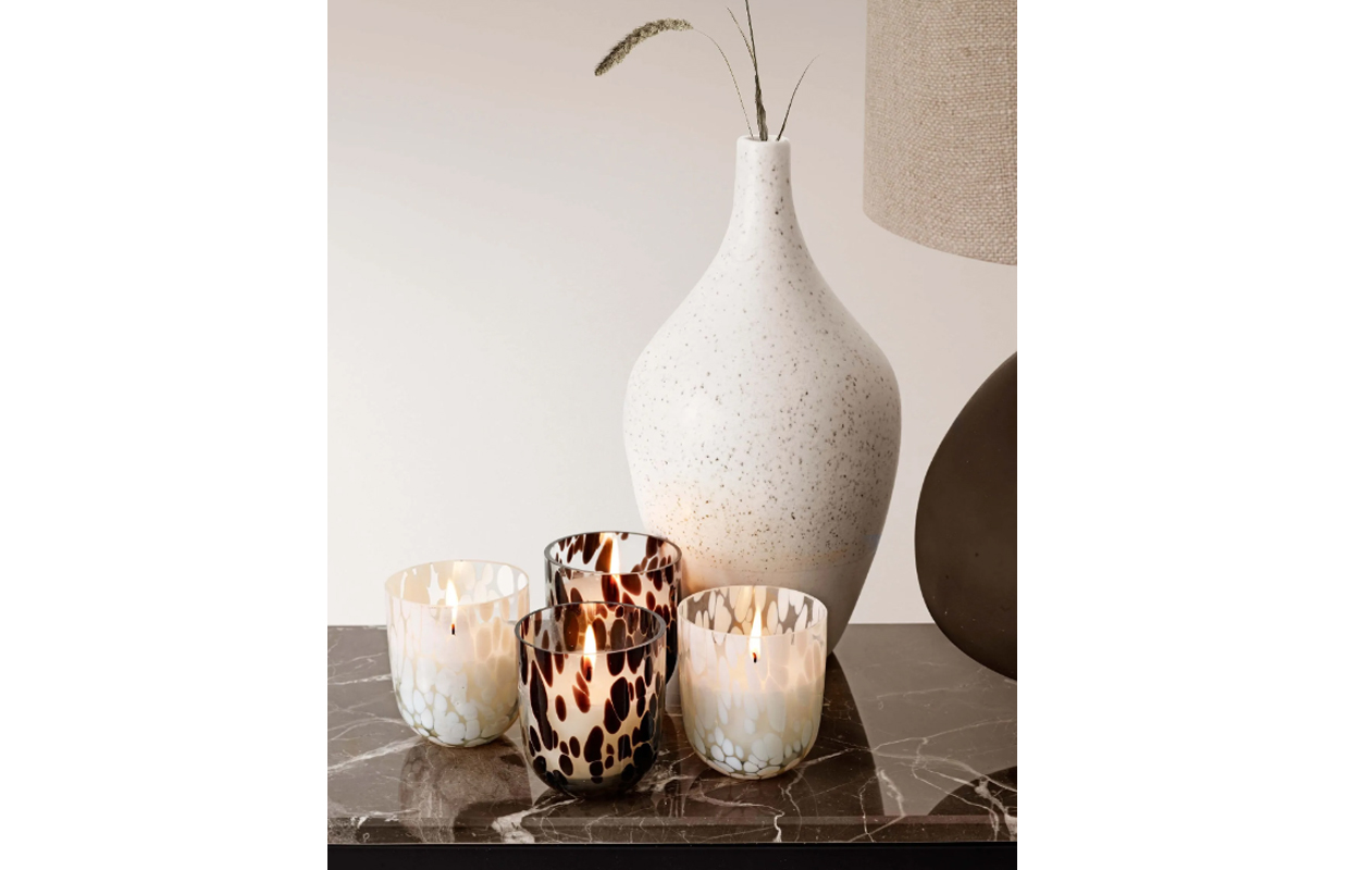 2-Pack Doftljus Oyster Brown. Härlig doft av rabarber och vinbär. Vacker glasbehållare med brunt mönster. Skapar ett vackert sken när det brinner. När ljuset brunnit ut blir det en fin ljuslykta. Finns även med vitt mönster. Brinntid 20h.