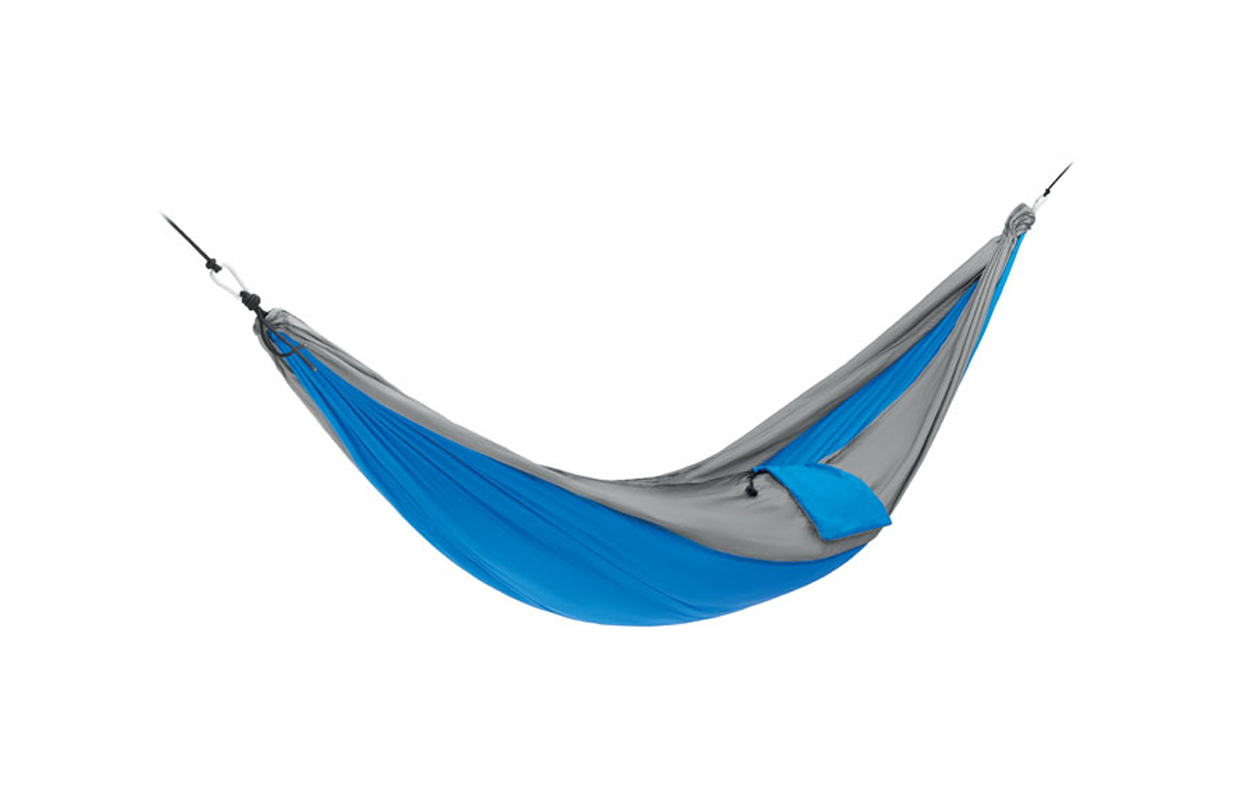 Lättvikts hängmatta i starkt nylonmaterial. För enkel uppsättning ingår bandet och karbinhakar. Packas enkelt ner i sidofickan. Denna hängmatta klarar vikt upp till 200 kg.